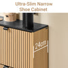 SoBuy FSR202-N, Shoe Cabinet Storage Cabinet – Slim Narrow Shoe Rack with Flip Drawers for 8-12 Pairs, Hallway Storage Unit in Black Marble & Light Wood, 60×24×88cm, 30kg Load