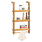 The table has a drawer for storing something and 3 hangers on the left side for hanging towels.