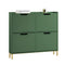 Modern design shoe cabinet offers storage for shoes as well as extra seating space.