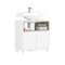 'U' shaped cut-out slots in easily underneath your sink: a cut-out in the size of W19 x D22cm on all the shelves to fit neatly under most pedestal sinks. (Please measure before purchasing).