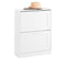 It provides a shoe storage compartment of 2 flip-drawers. 2 rows of spaces for each drawer.