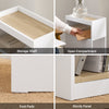 [FLEXIBLE STORAGE] This slim bedside table features a practical drawer that can be installed in both left or right directions, offering flexible use to suit your space. The open shelf below provides easy access for books, remotes, or decor items. The top surface is designed with protective borders around the edges, preventing items from falling off—perfect for use beside the bed or sofa