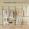 [HEAVY DUTY CONSTRUCTION AND FLEXIBLE APPLICATION] The sturdy metal frame supports up to 65kg as a reliable clothes hanging rail. The telescopic width (209–311cm) and height (200–295cm) easily adjusts to fit any room layout
